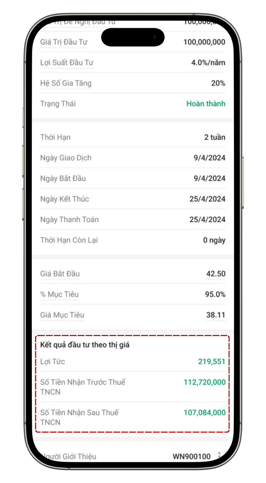 Khi giao dịch của bạn có lãi, mức thuế TNCN từ hoạt động đầu tư là 5% tính trên số tiền lãi. Chúng tôi sẽ tự động khấu trừ phần thuế này trước khi chuyển trả tiền về tài khoản của bạn để đảm bảo các nghĩa vụ thuế liên quan.