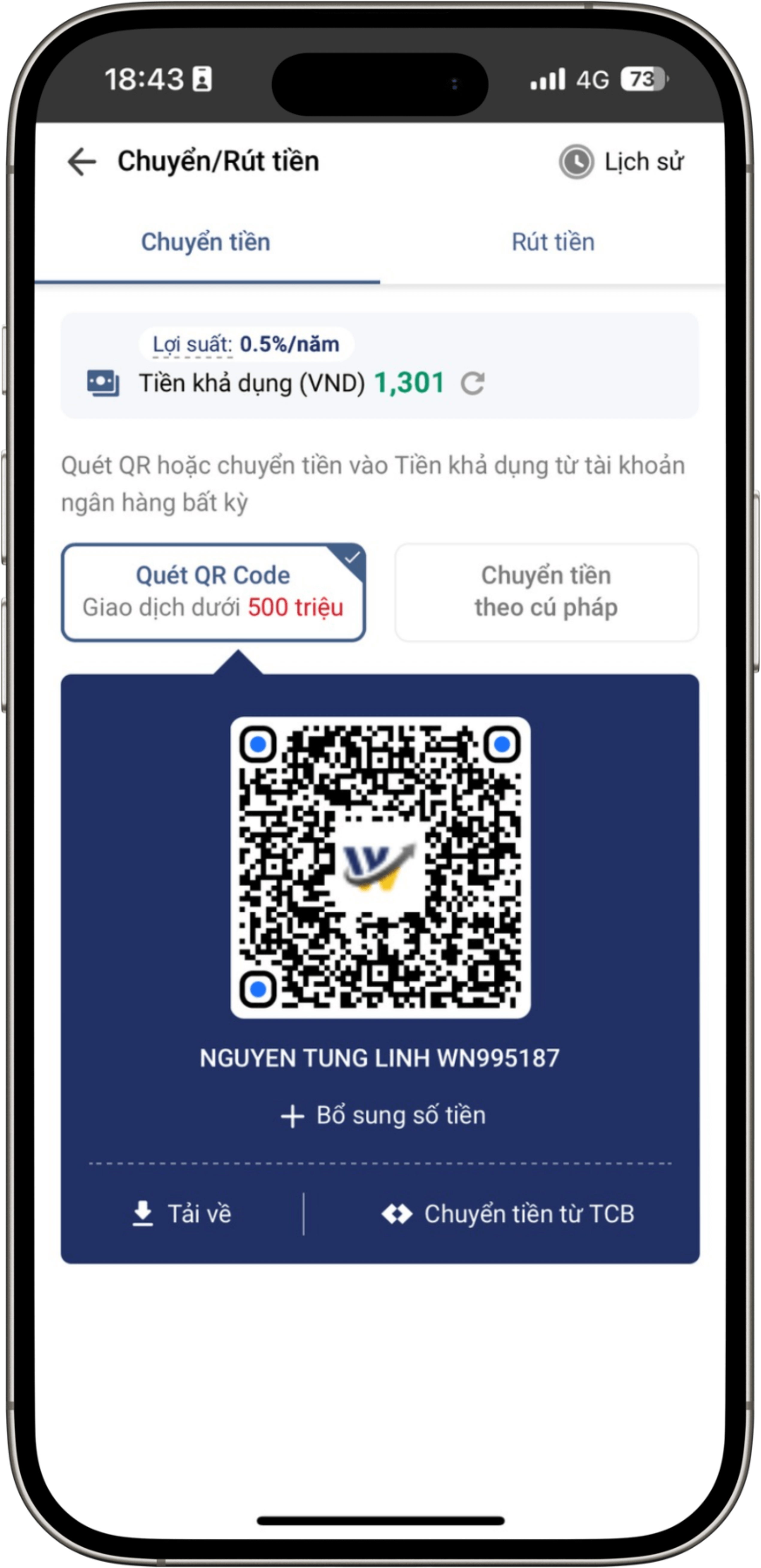 Bước 2: Chuyển tiền vào tài khoản WealthNet
