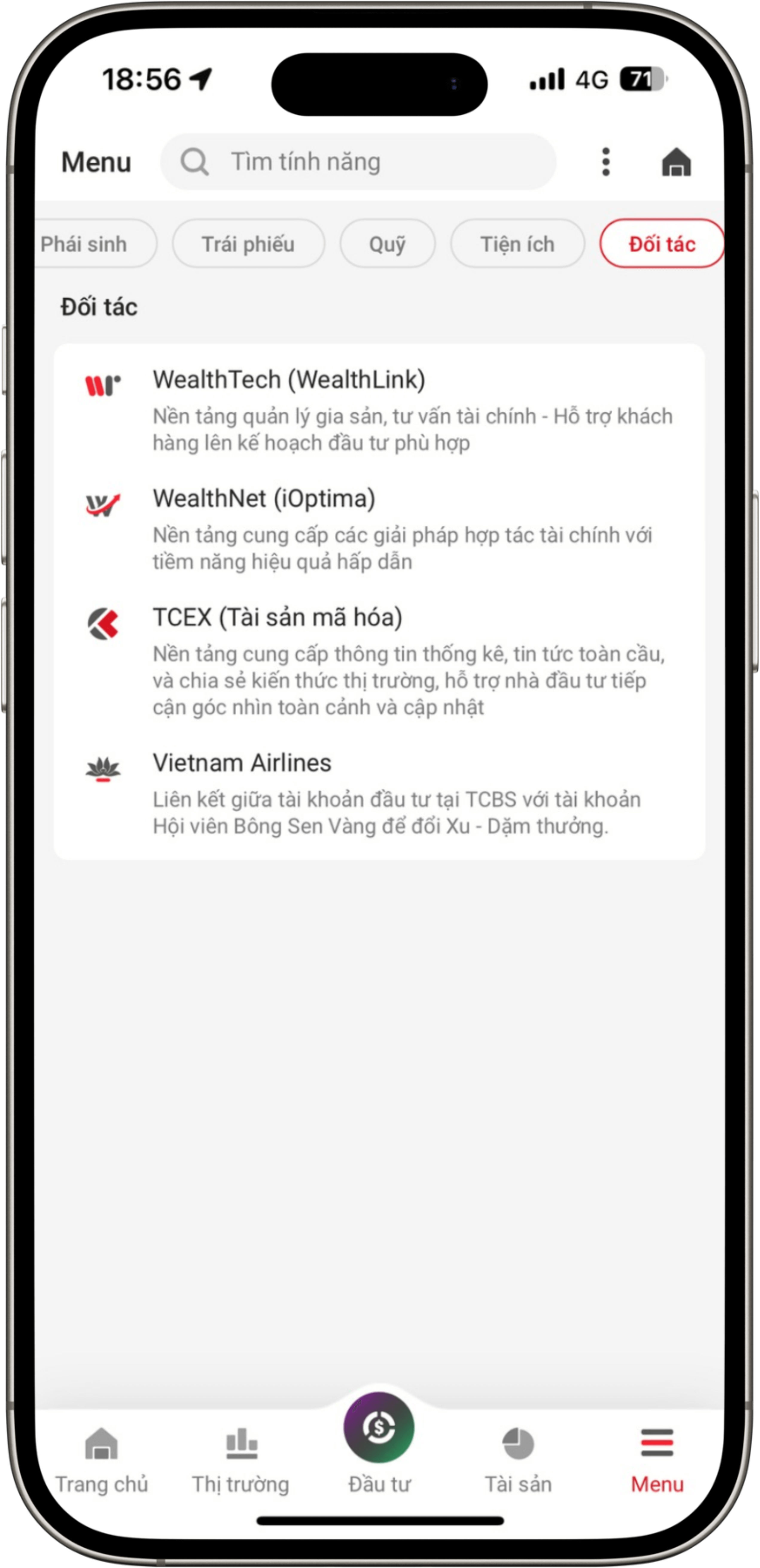 Đăng nhập vào tài khoản TCInvest và tìm mục Đối tác/WealthNet. Thực hiện mở tài khoản hoàn toàn trực tuyến và đồng ý với các văn bản hợp tác đầu tư với WealthNet.