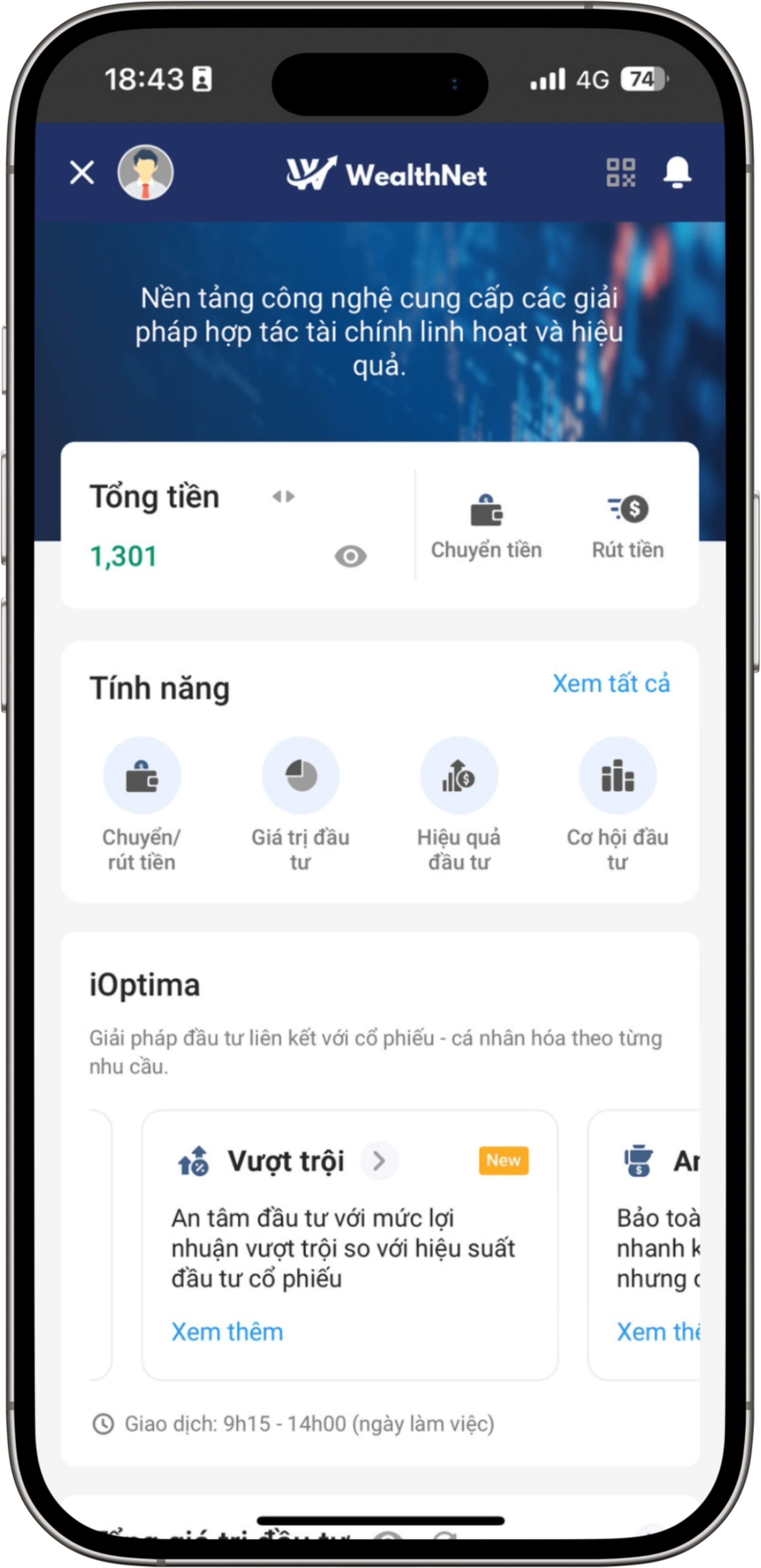 iOptima là giải pháp đầu tư với tiềm năng lợi nhuận hấp dẫn, đi kèm mức độ rủi ro tương ứng. Đây không phải là sản phẩm tiết kiệm. Vui lòng đọc kỹ điều khoản và điều kiện trước khi tham gia.